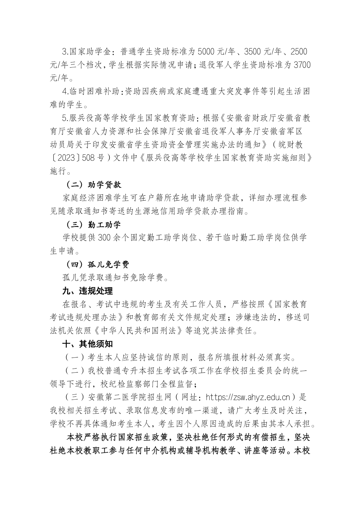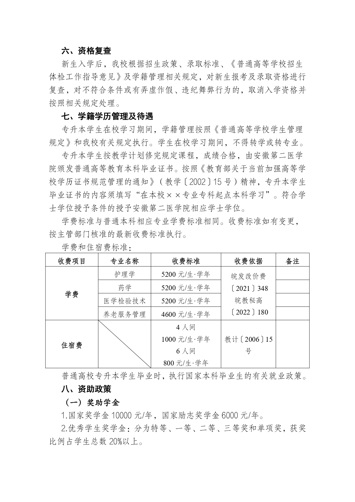 安徽医科大学2023年普通高校专升本招生章程