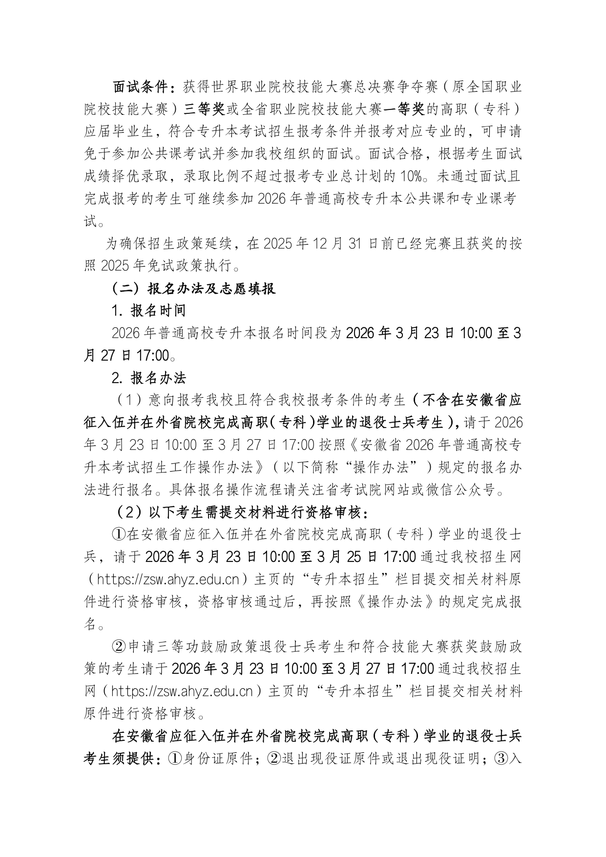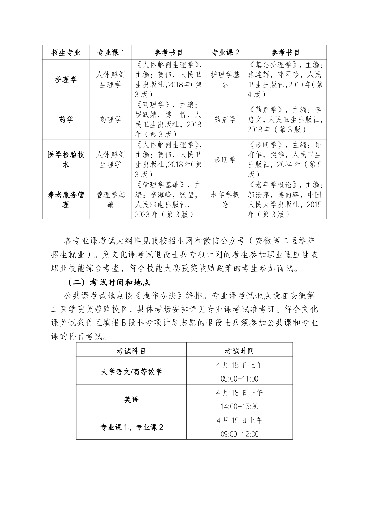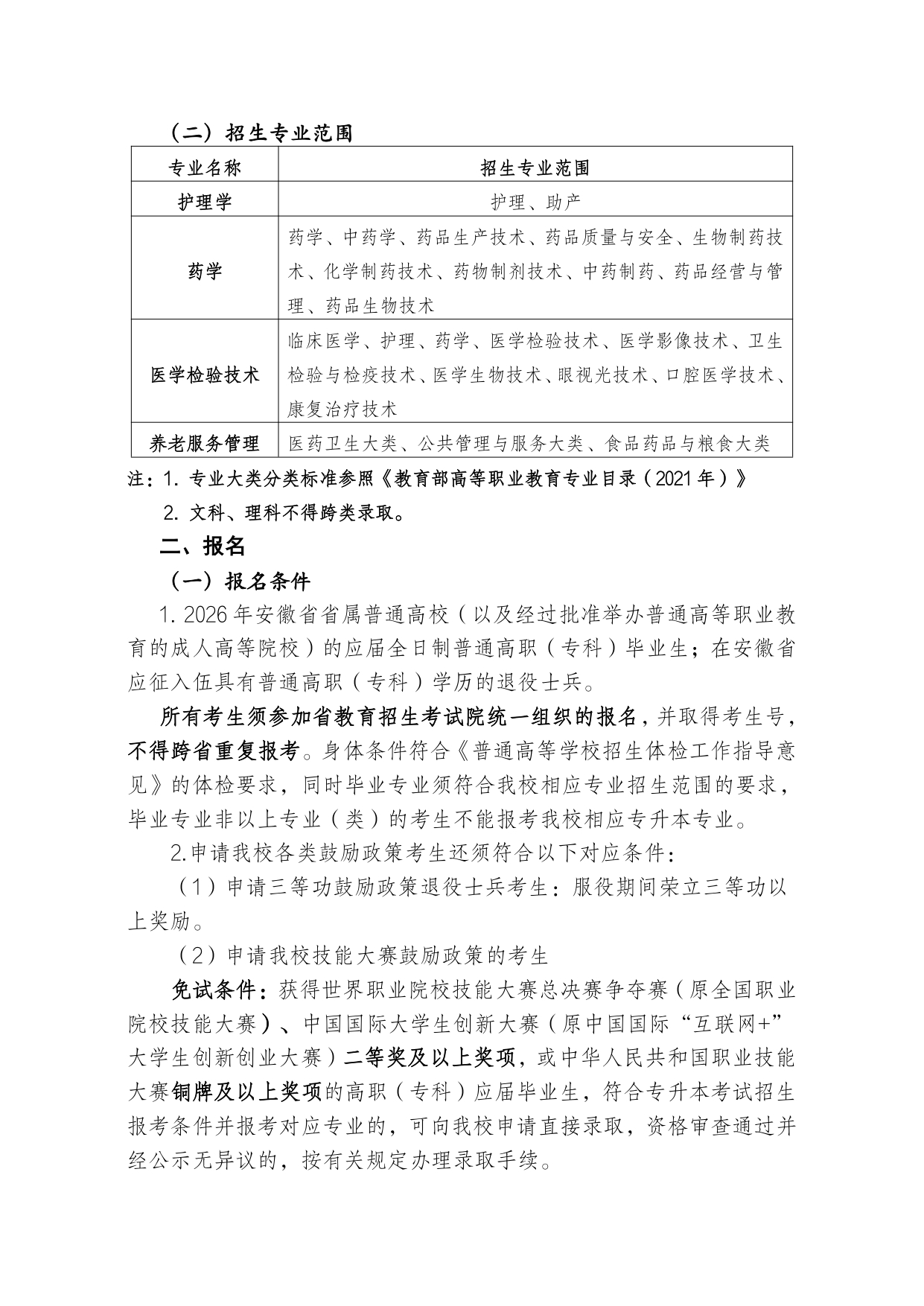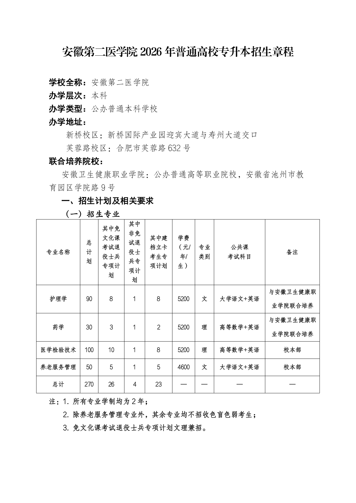 安徽第二医学院 2026 年普通高校专升本招生章程