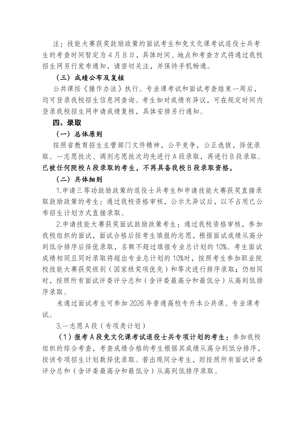 安徽财经大学2026年普通高校专升本 招生章程